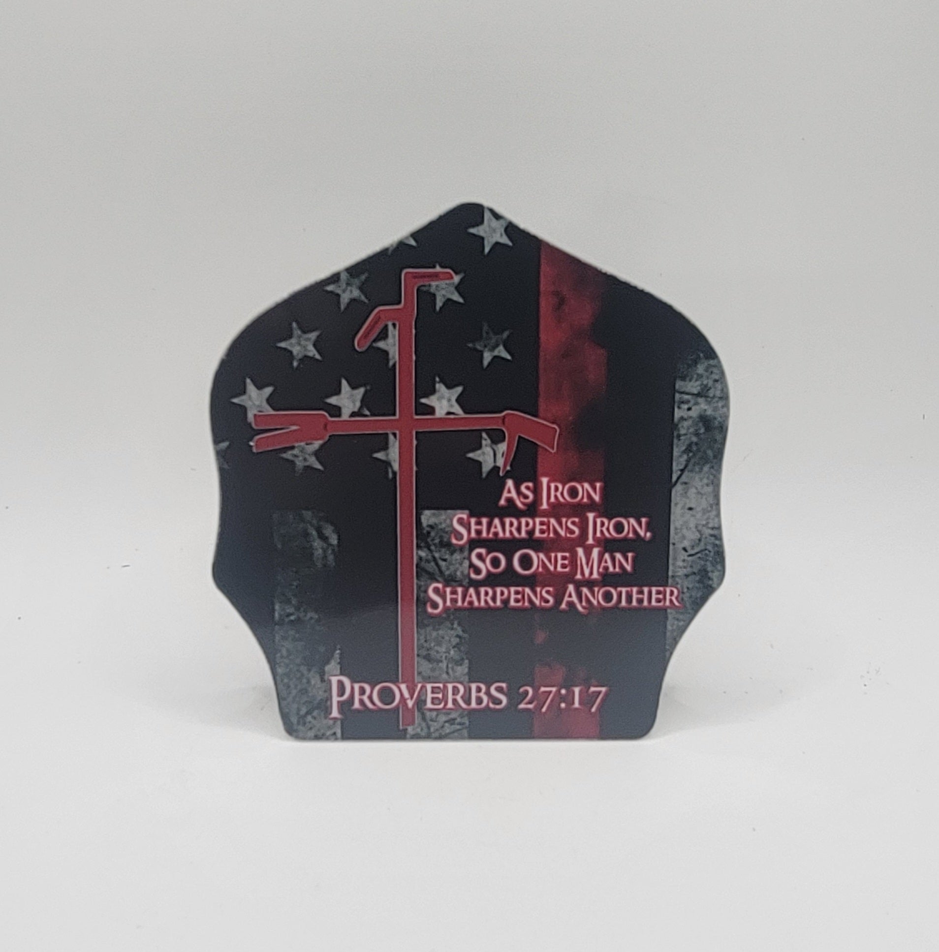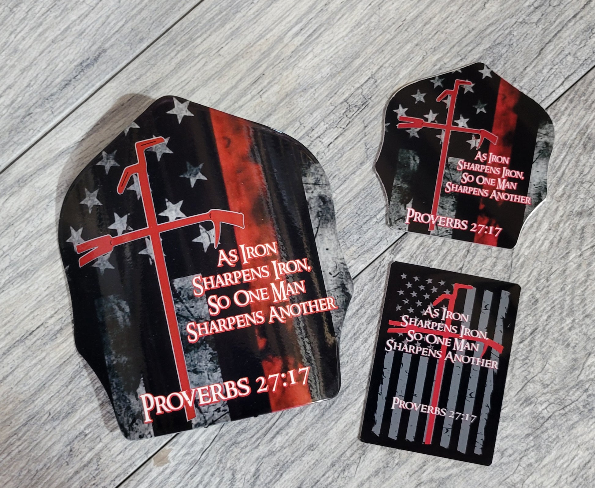 As Iron Sharpens Iron Firefighter MINI helmet shields. 3.5x3.5" thick aluminum