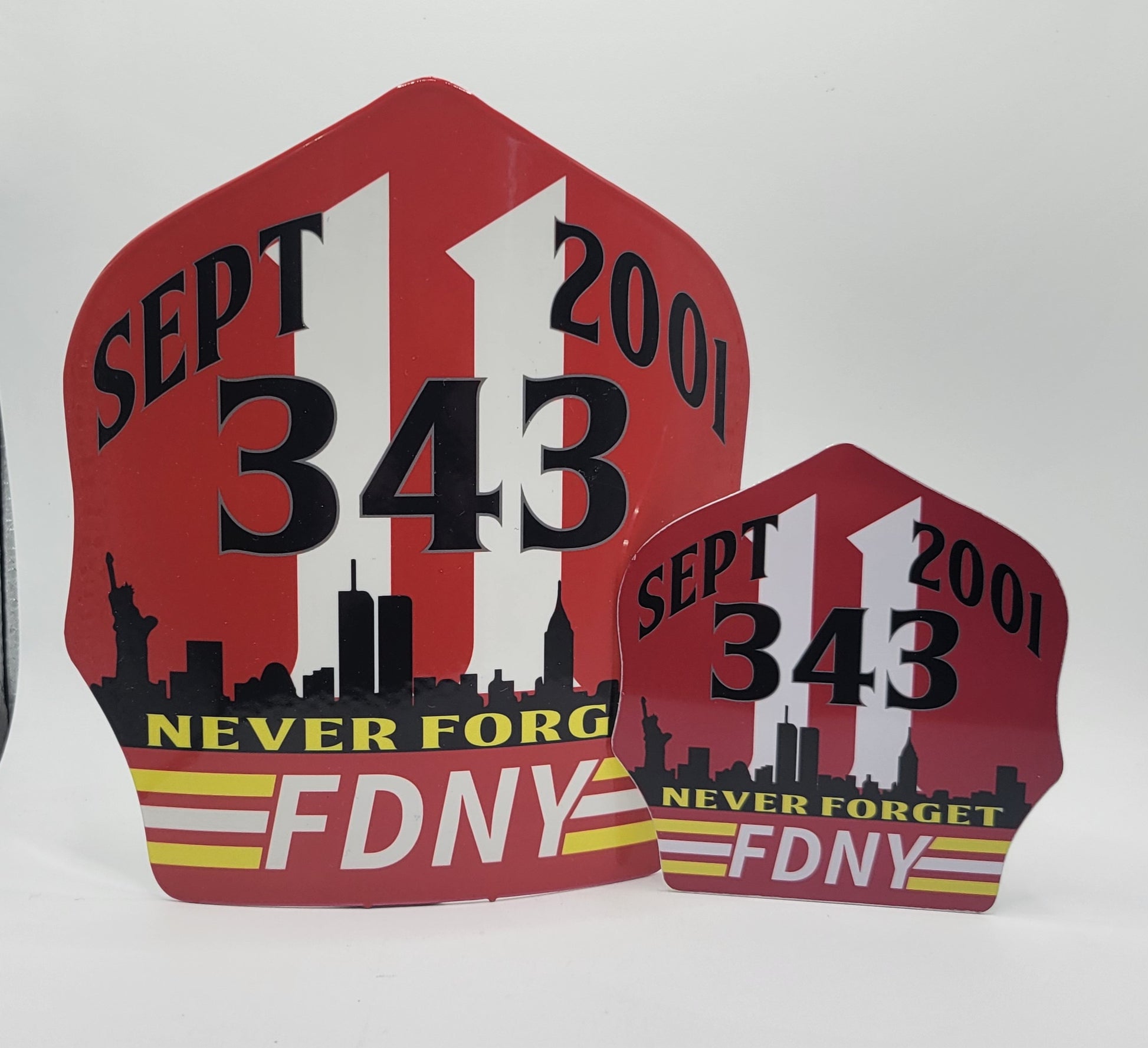 FDNY 911 Never Forget Firefighter MINI helmet shields. 3.5x3.5" thick aluminum