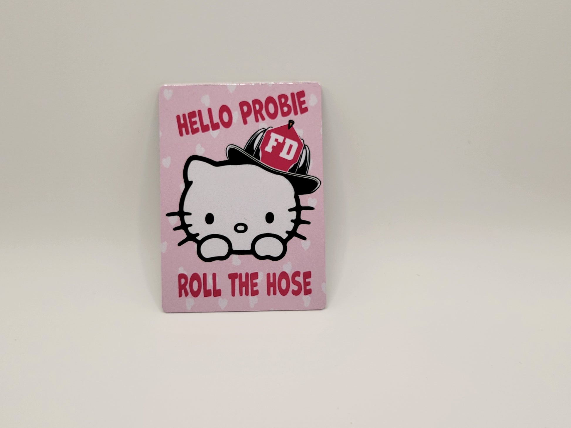 Give your helmet some character with a Hello Probie, roll the hose Metal Playing Card!