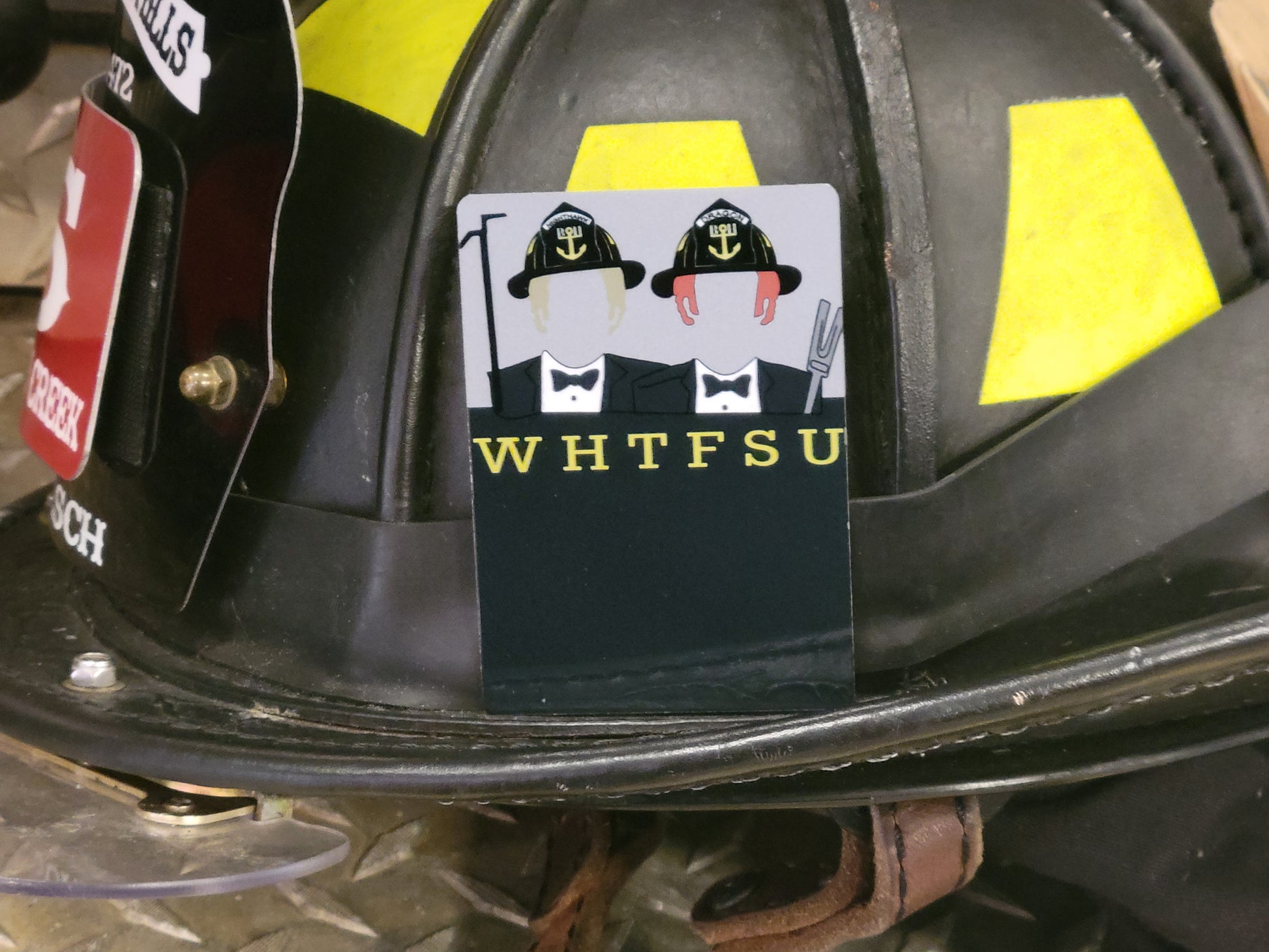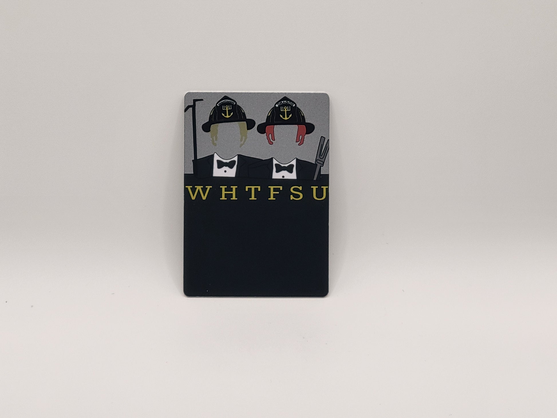 Give your helmet some character with a WHTFSU, step brother V1 Metal Playing Card!